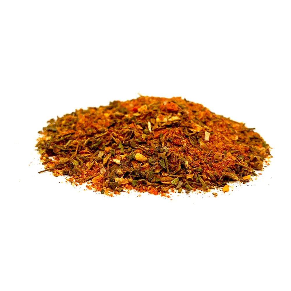 Składniki: sól, papryka czerwona słodka, czosnek, cukier, cebula, pieprz ziołowy, tymianek, oregano, bazylia, cząber, chilli, marchew, gorczyca biała, kolendra, hydrolizat białka z kukurydzy i słonecznika, estragon, rozmaryn.