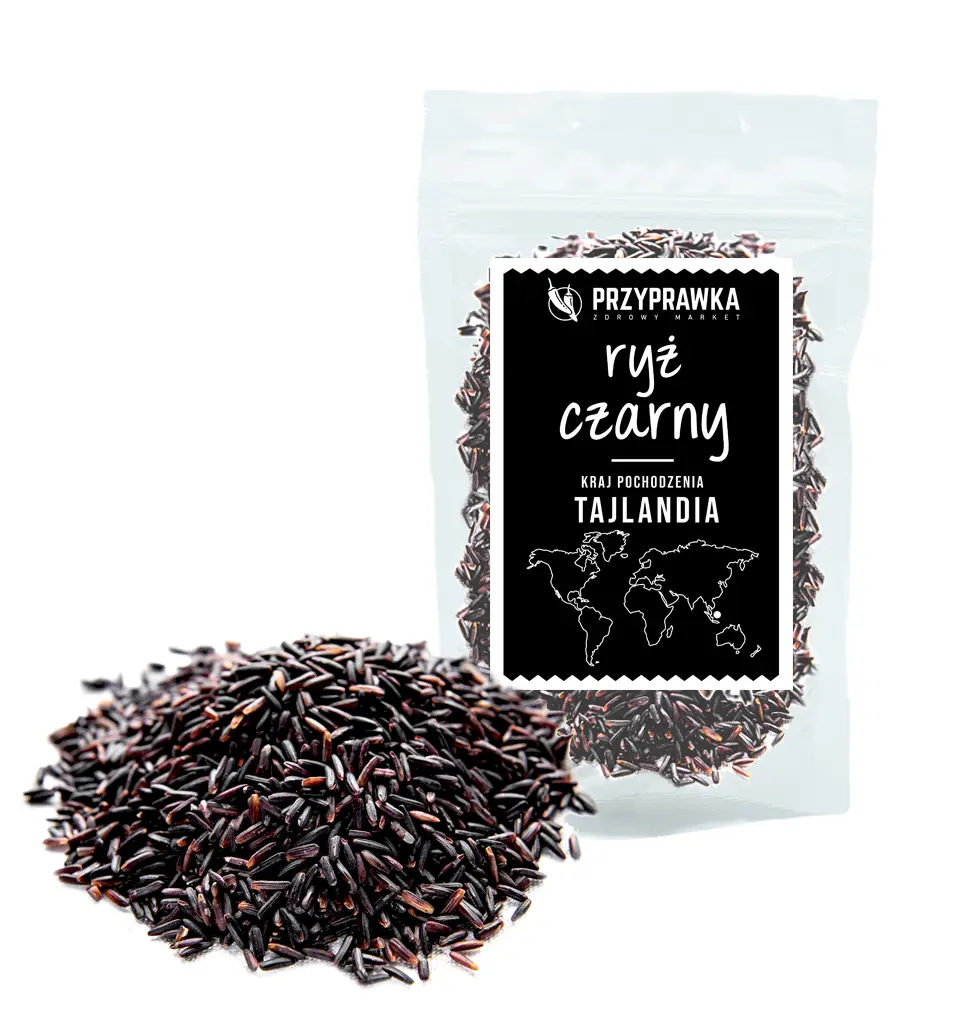 Ryż czarny to to ryż pełnoziarnisty, uważany za jedną z najbardziej zdrowych potraw na świecie. Zawiera bardzo dużo błonnika, witamin oraz aminokwasów. Jest także cennym źródłem żelaza, a także bardzo korzystnie na pracę układu krążenia, pamięć oraz wzrok.